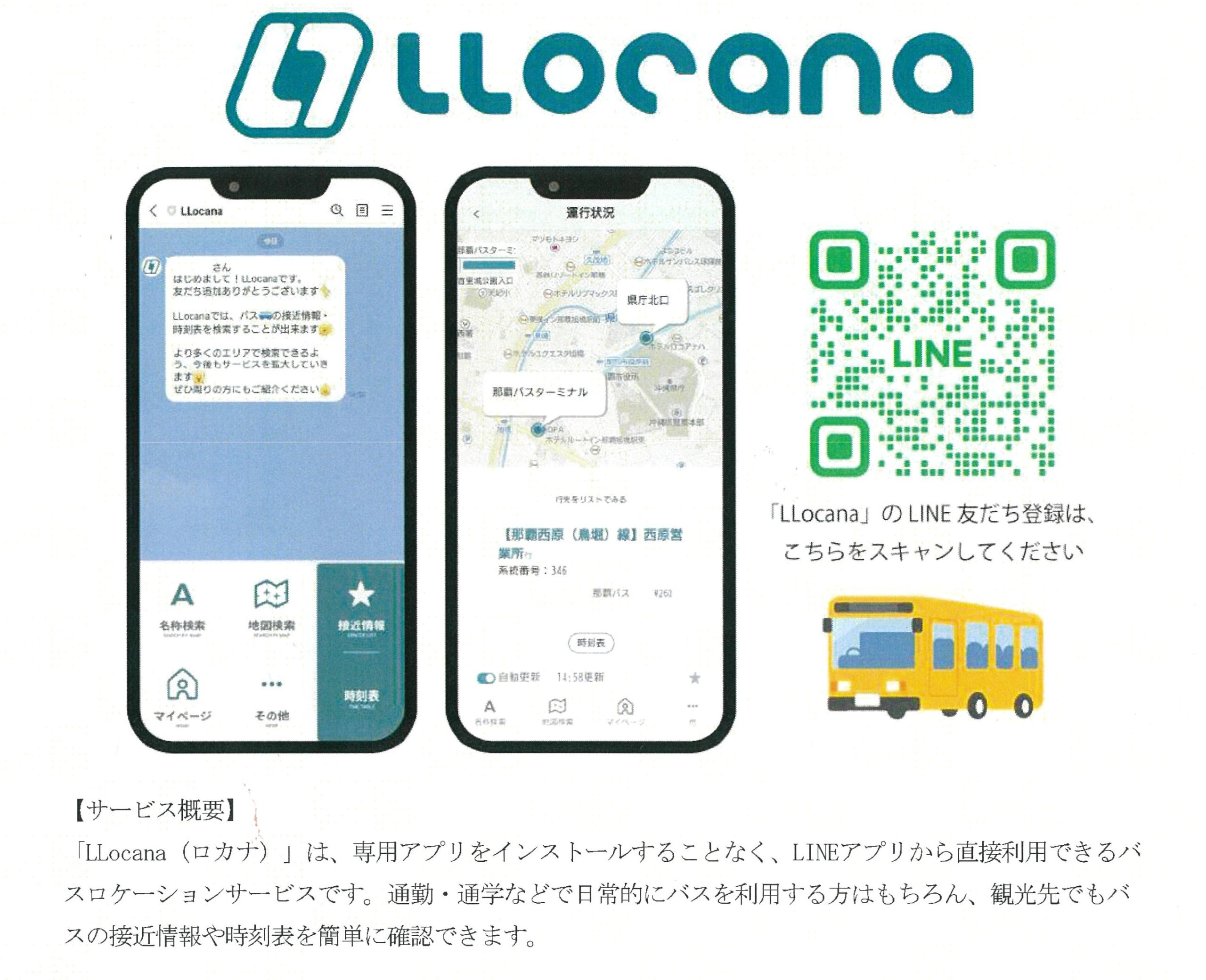 LINEで使える全国版バスロケーションサービス「LLocana(ロカナ)」のサービス開始について 毎度、東陽バスをご利用いただき、誠にありがとうございます。 このたび、LINEで使える全国版バスロケーションシステム「LLocana(ロカナ)」のサービスが開始されました。 「LLocana(ロカナ)の使い方」 << 前へ 一覧へ